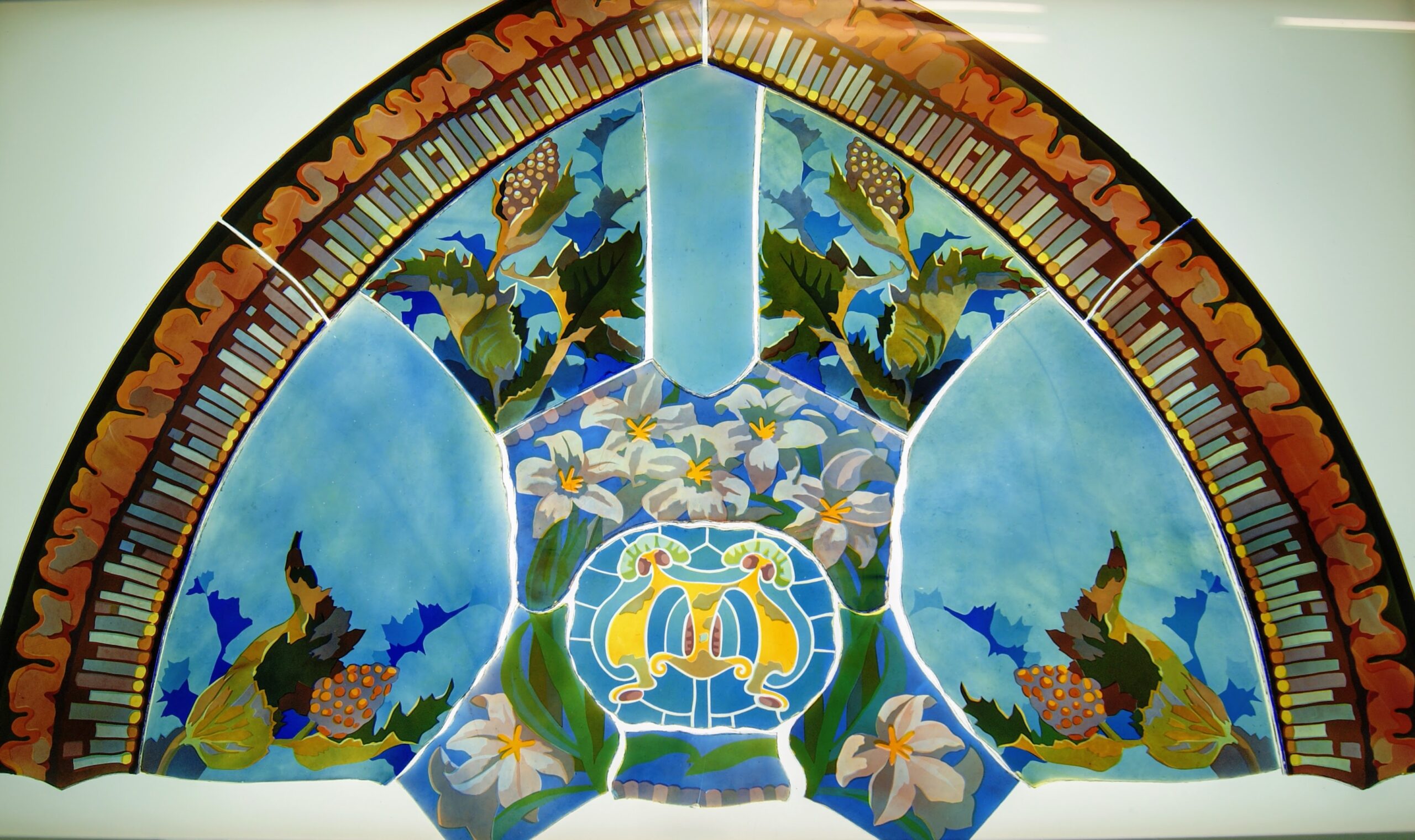 • Restauración de vidriera de Josep M.ª Pericas, realizada con la técnica de la tricromía.