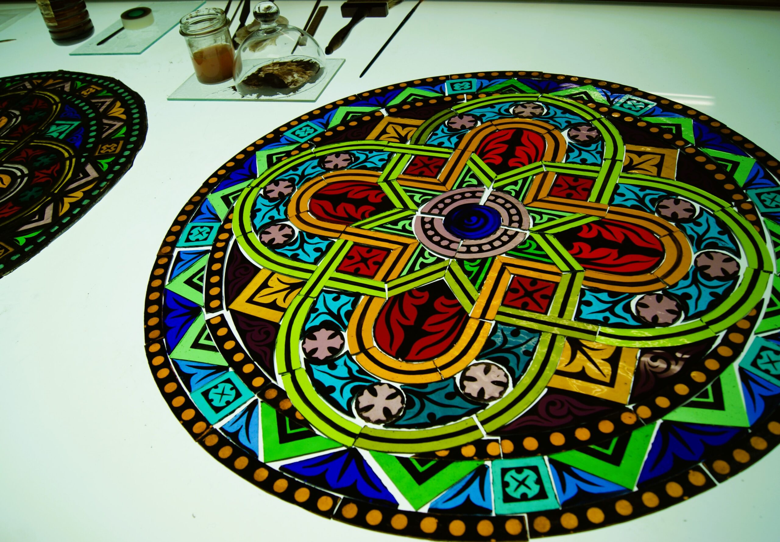 • Realización de vidriera circular, según modelo y restos originales.